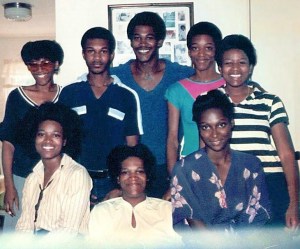 Little Brother with Big BrotherLeft to Right – back row – Dana, Shawn, Michael, Elena, Lajeune front row – Casandra my mother Jean, Joandra