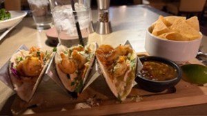 James and I played 14 holes before it got too cold for me (it was unusually windy that afternoon which caused the air to become cold). It was also starting to become dark as sunset was near. Christian and Jorge’ were happy to continue golfing but between the impending sunset and the now fierce winds I wanted to get back to our hotel to warm up. We were starving though so we ate first right next door at the clubhouse – I had blackened shrimp tacos, chips and salsa. The food was delish. That night we packed our clothes as (sigh) we were leaving the next day for Connecticut.