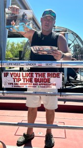 Our Swamp tour was on a small airboat which carried up to 10 passengers. Â With transportation to the pier and the tour it cost us $119 per person. Â It was worth it though because we went deep into the swamp and stayed for almost 2 hours with a tour guide who was native to the area – 5th generation bayou family member – he regaled us with stories of him and his friends hanging out in the swamp when they were little boys looking for alligators and snakes. Â He called the swamp his “backyard.” Â I called him our Crocodile Dundee (smile).